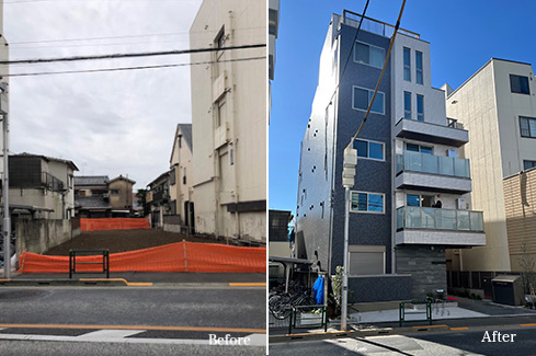 相続問題があり士業をご紹介することで問題を解決。建替え提案とリフォームの比較をご提示し、お客様の意向に沿った数社をご紹介させて頂き、理想に叶う投資用アパートが完成しました。